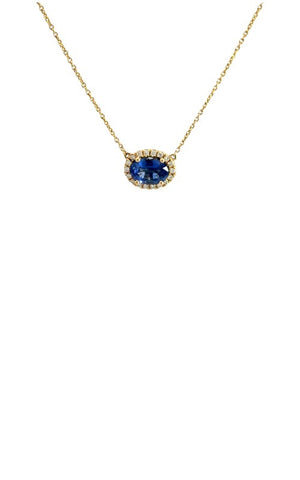 18K YELLOW GOLD BLUE SAPPHIRE HALO NECKLACE G16142