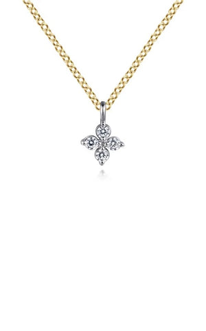 14K Yellow & White Gold Diamond Flower Shape Pendant Necklace